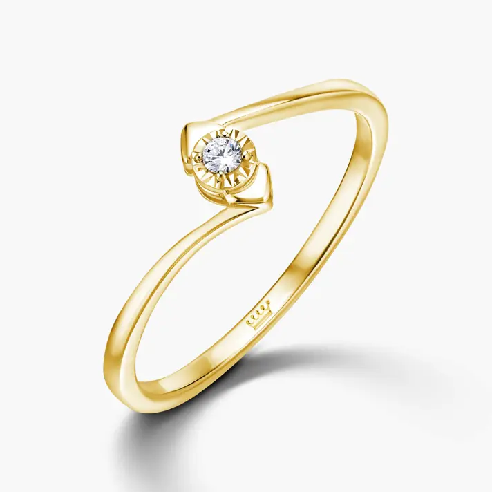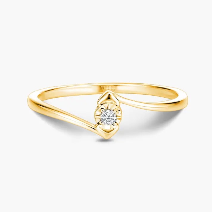 טבעת זהב לבן 14K המעוצבת עם עין מזהב ובמרכזה משובץ יהלום טבעי ונוצץ המוקף במעגל זהב בעיבוד לייזר מנצנץ. מידות העין - 6*3.5 מ"מ.