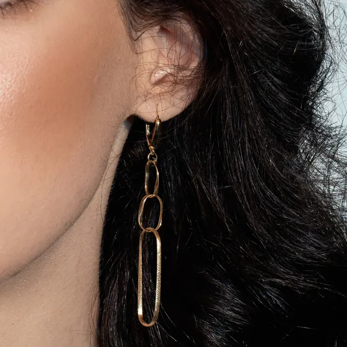 עגילי חישוקים אובלים בגדלים משתנים ואלגנטי ביותר למראה דרמטי ועוצמתי. אורך העגילים 7.3 ס"מ.