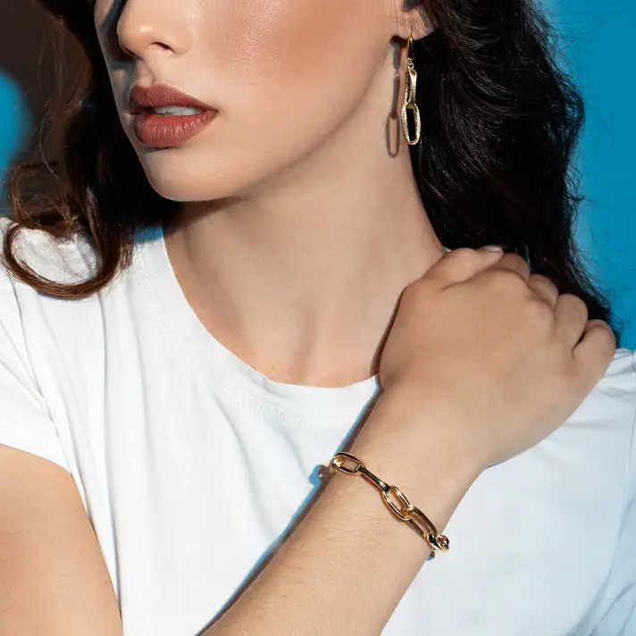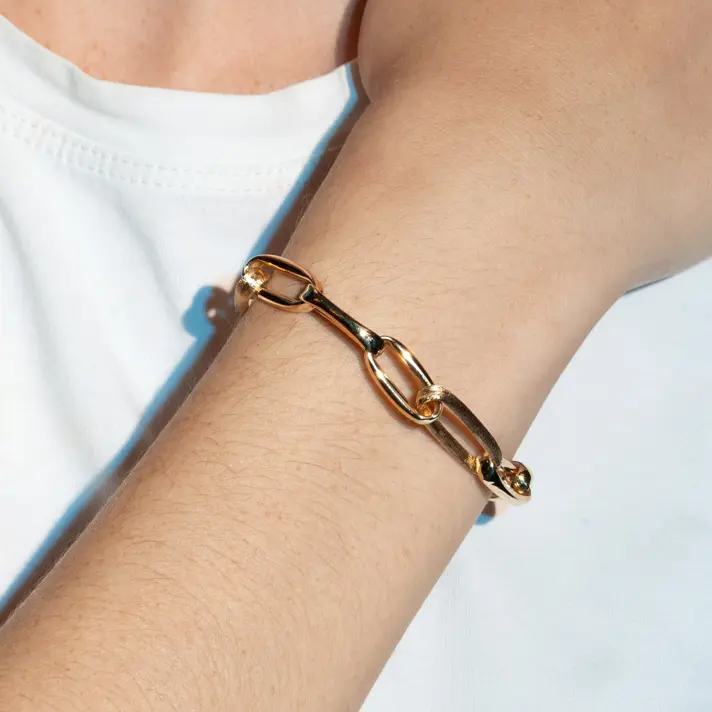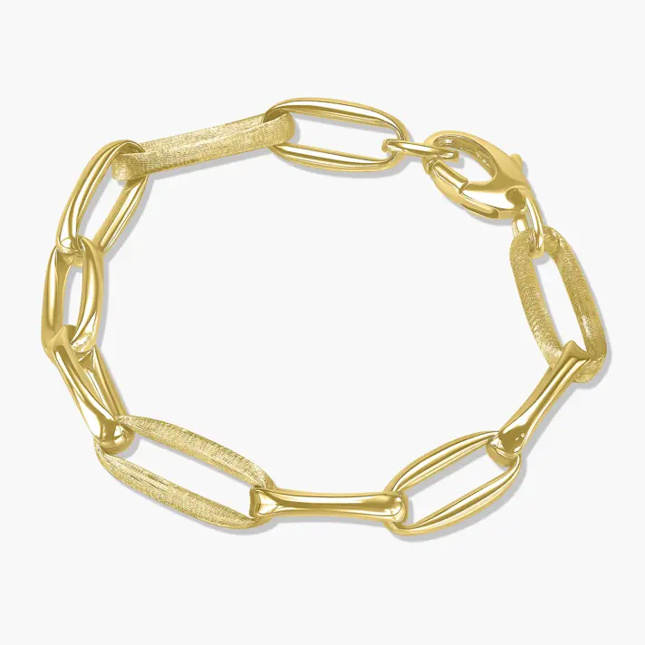 צמיד זהב 14K מסדרת ג'ולין הבנוי מחוליות זהב ובהן 3 חוליות בגימור SATEN מט מהממם ויחודי. אורך הצמיד 19 ס"מ.