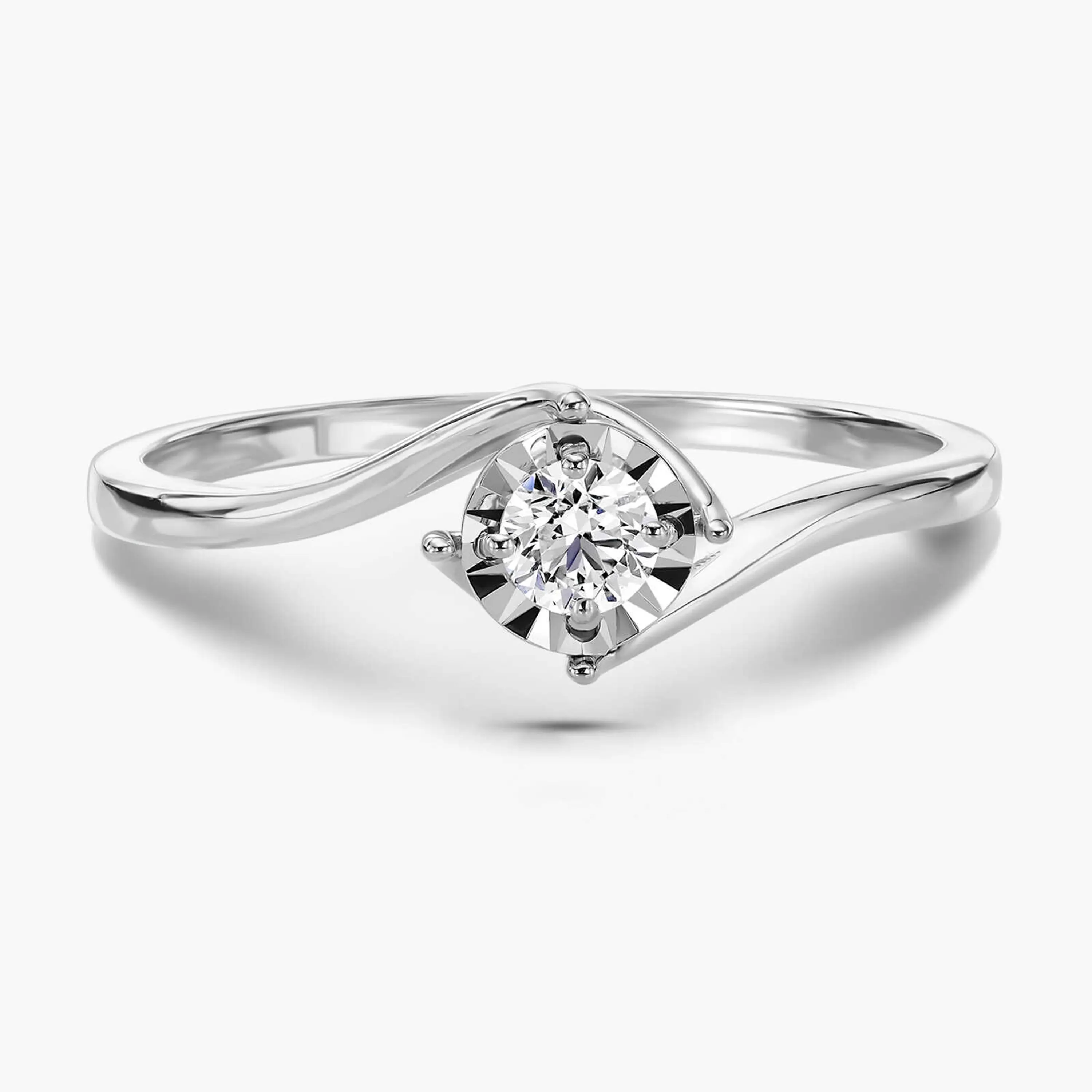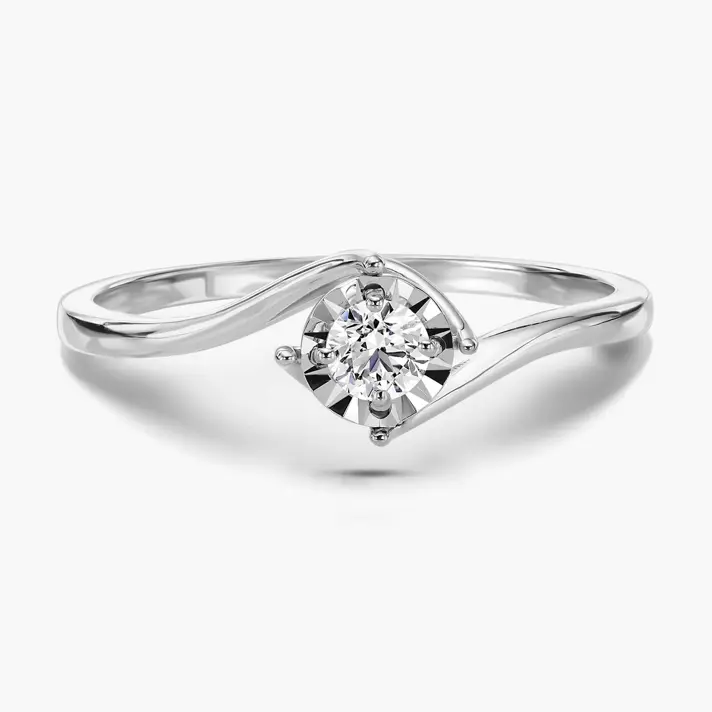 טבעת מזהב לבן 14K עדינה ומיוחדת ובמרכזה מעגל זהב בגימור לייזר בשיבוץ יהלום טבעי ונוצץ.