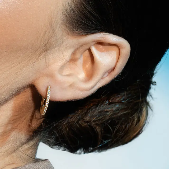 עגילי זהב 14K חישוק משובץ זרקונים. מידות: קוטר 1.8 ס"מ
