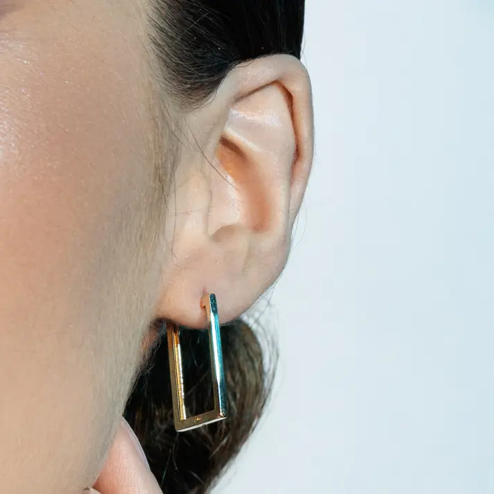 עגילי זהב 14K מלבניים באורך 2.2 ס"מ וברוחב 1.5 ס"מ.
