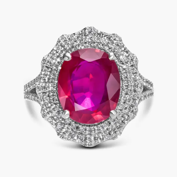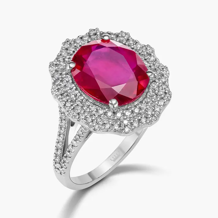 טבעת איסלה משובצת יהלומים ורובי גלס