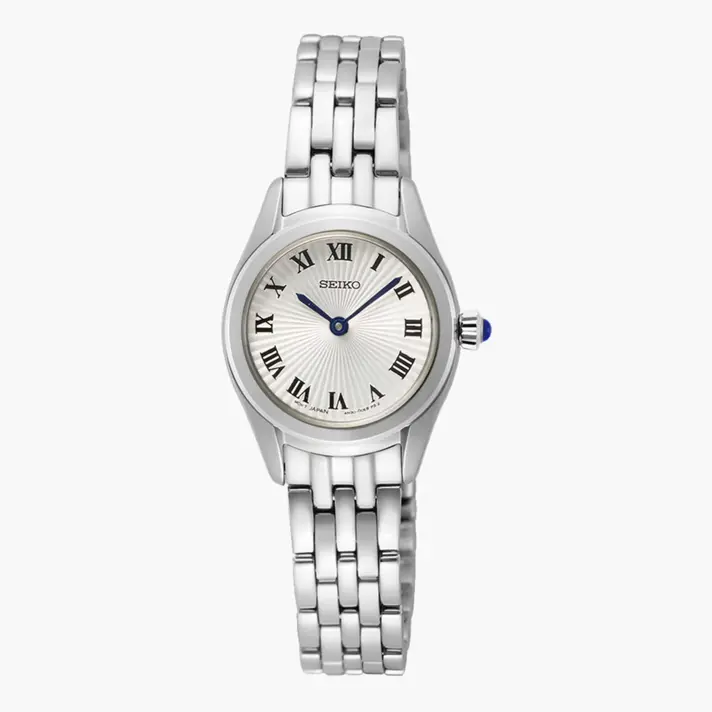 שעון SEIKO לנשים הבנוי באופן מנימליסטי מותאם לנשים בעלי היקף פרק יד קטן.