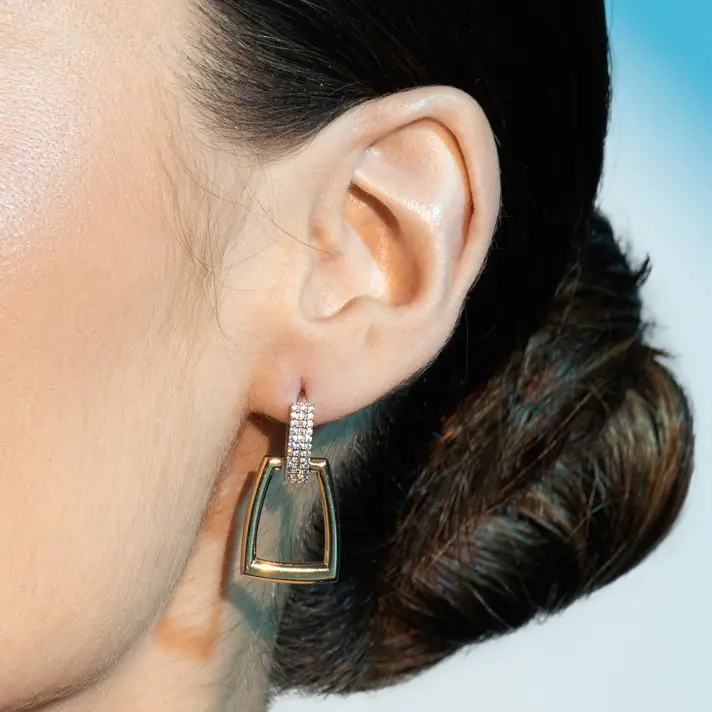 עגילי זהב STELLA 14K משובצים בזירקונים נוצצים בגודל 1.5*3 ס"מ.