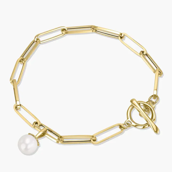 צמיד חוליות זהב בשילוב פנינה