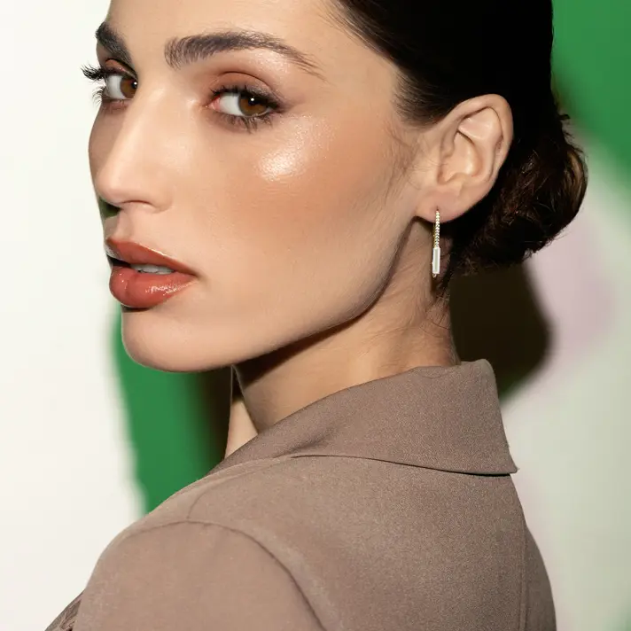 עגילי זהב עם אבני חן לבנות וזרקונים