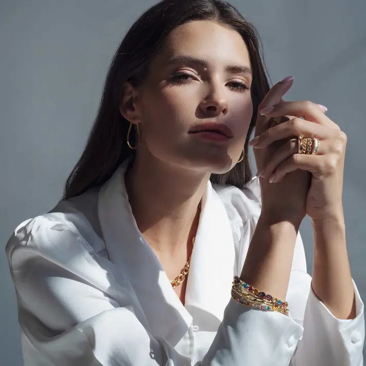 צמיד זהב מסדרת RAINBOW משובץ אבני חן יוקרתיות בחיתוך אובאלי