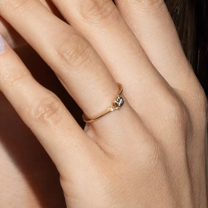 טבעת זהב 14K עם טוויסט ששומר עליה קלאסית אך מוסיף לה ייחודיות, משובצת יהלום סוליטר אמיתי ומנצנץ.