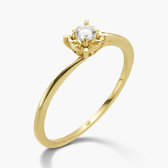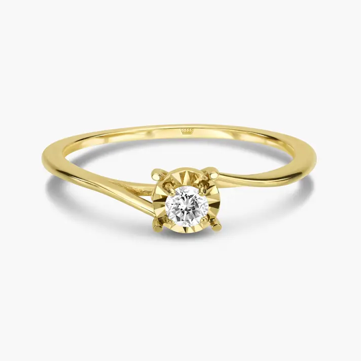 טבעת זהב 14K, מקולקציית MARRY ME משובצת יהלום סוליטר טבעי ונוצץ בגימור לייזר לנצנוץ מקסימלי. קלאסית להצעת נישואין.