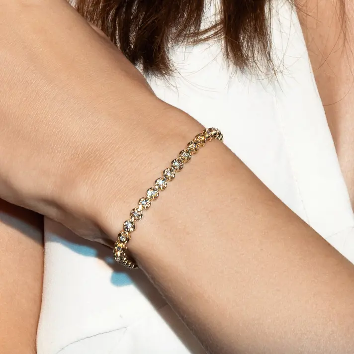 צמיד נואל מזהב 14K בסגנון טניס ובשיבוץ 39 יהלומים טבעיים ונוצצים.