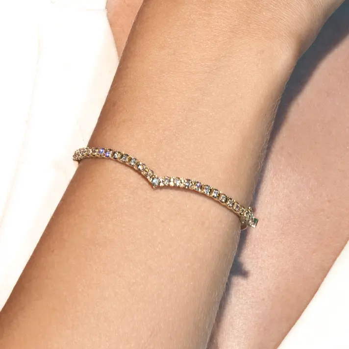 צמיד זהב 14K קשיח בצורת לב משובץ 27 יהלומים טבעיים ונוצצים.