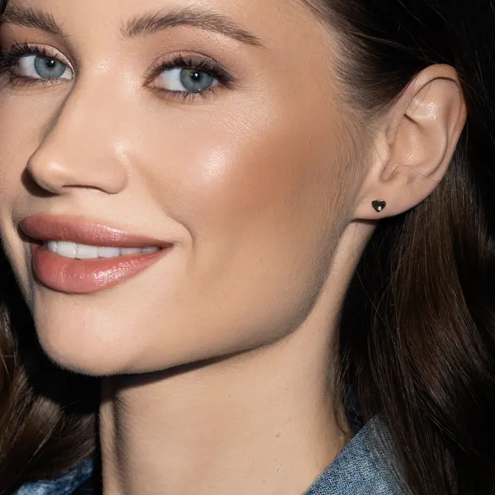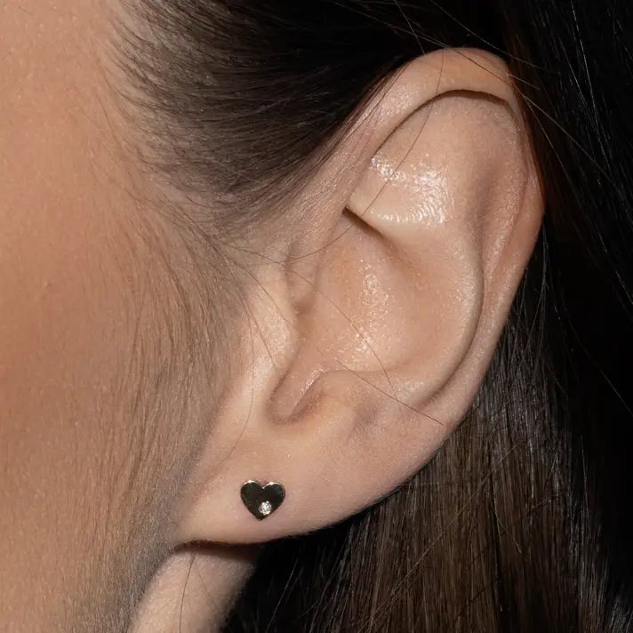 עגילי לב צמודי אוזן בשיבוץ יהלום. העגילים מזהב 14K בשיבוץ יהלום טבעי ונוצץ. מידות העגילים 0.5*0.5 ס"מ.