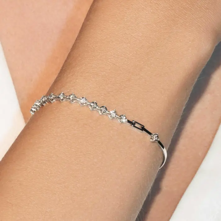 צמיד אריאנה מזהב 14K חצי קשיח בשילוב חוליות וסוגר לובסטר ובשיבוץ 13 יהלומים טבעיים ונוצצים.