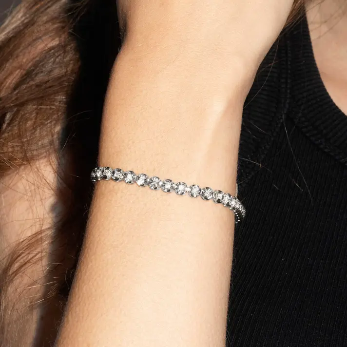 צמיד ריבר מזהב 14K בסגנון טניס ובשיבוץ 35 יהלומים טבעיים ונוצצים.