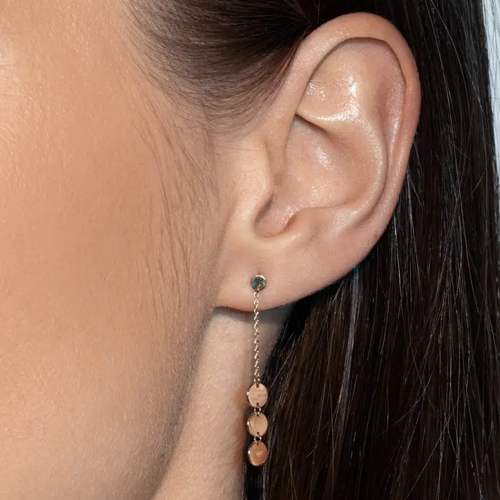 עגילי זהב ארוכים בשילוב דיסקיות זהב