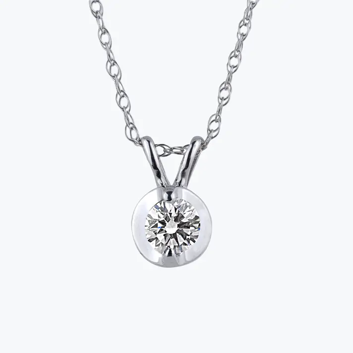 תליון זהב לבן 14K משובץ ביהלום יחיד בעיצוב קלאסי. קוטר התליון 4.5 מ"מ