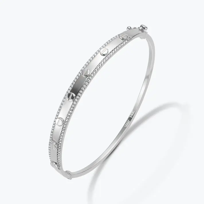 צמיד קשיח אליס מזהב 14K ובשיבוץ זרקונים נוצצים. מידות הצמיד 6.0*5.2*0.6 ס"מ.