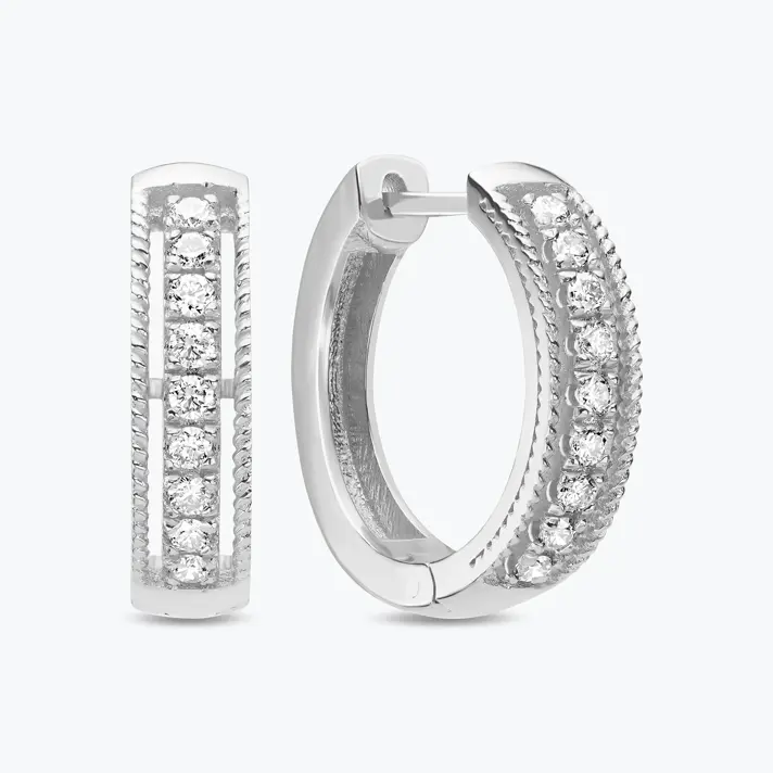 עגילי זהב 14K חישוקים קלאסיים בשיבוץ 18 יהלומים טבעיים ונוצצים. מידות העגילים: קוטר 1.5 ס"מ,רוחב 0.4 ס"מ.