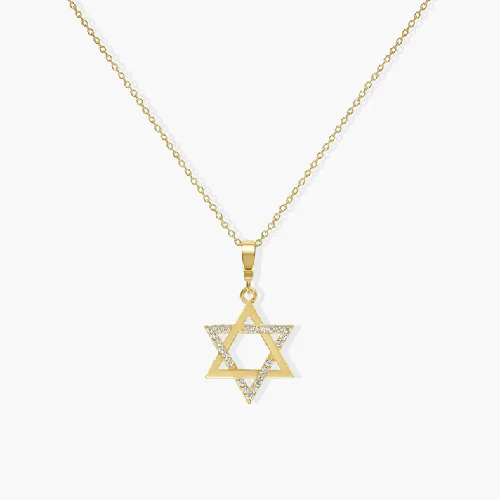 תליון מגן דוד מזהב 14K בשיבוץ זרקונים נוצצים. מידות התליון 1.8*1.8