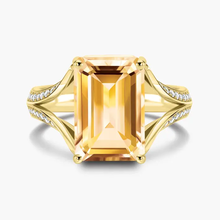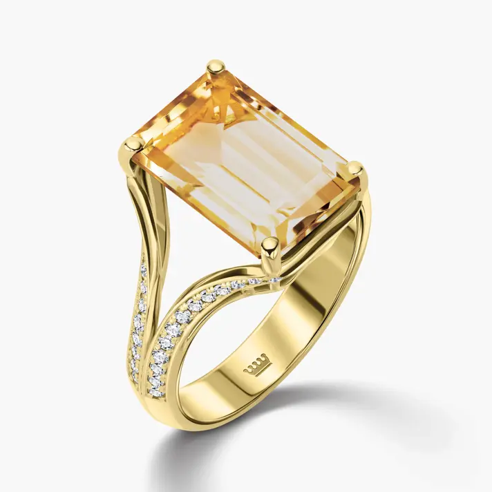 טבעת זהב 14K מקולקציית SPRING BLOOM האביבית, בשיבוץ סיטרין צהובה ו62 יהלומים טבעיים ונוצצים.