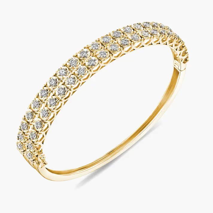 צמיד קאסי מזהב 14K קשיח בשיבוץ 54 יהלומים טבעיים ונוצצים בשתי שורות למראה נוצץ שאי אפשר לפספס!