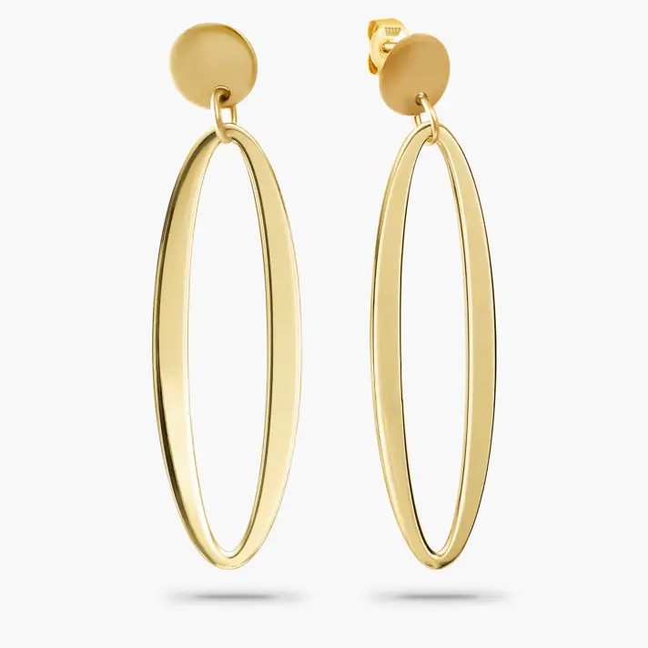 עגילי זהב 14K צמודי אוזן אובלים, מידות העגילים 3.5*1.0 ס"מ