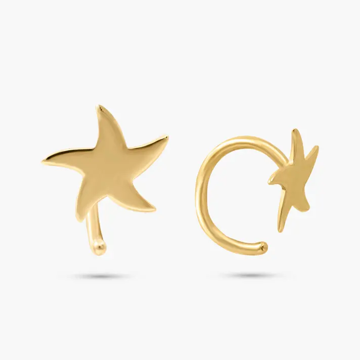 עגילי כוכב זהב 14K מקולקציית ROLL IN הנכנסיפ בטכניקת סיבוב ללא סוגר. מושלמים לעגיל שני\ שלישי.