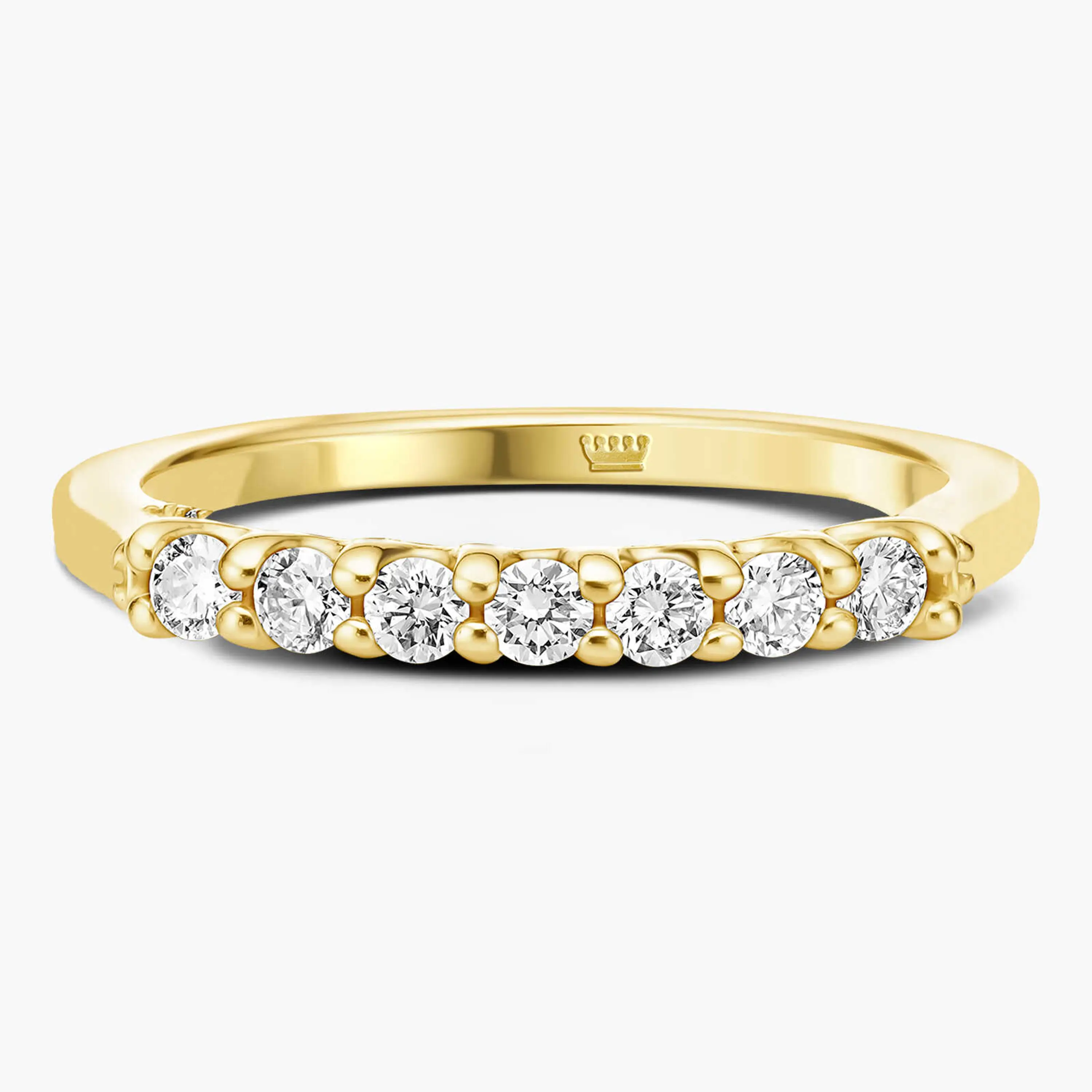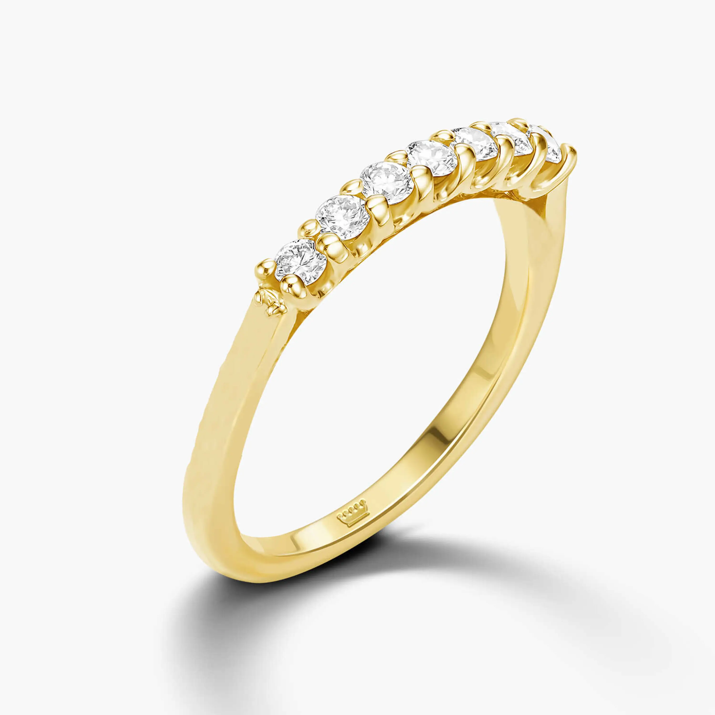 טבעת חצי נישואין מזהב 14K בשיבוץ 7 יהלומים טבעיים ונוצצים.