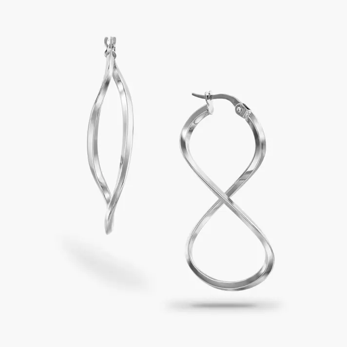 עגילי זהב 14K בצורת אינפיניטי המסמלת אינסוף. אורך העגיל 3.8 ס"מ. עובי העגיל 1.8 ס"מ