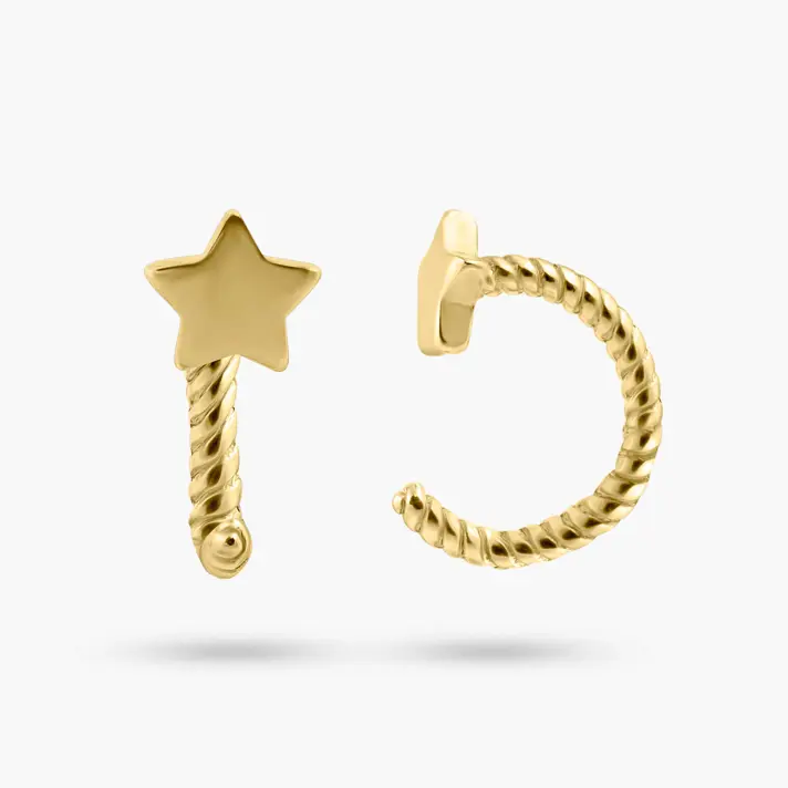 עגילי כוכב זהב 14K מקולקציית ROLL IN הנכנסים בטכניקת סיבוב ללא סוגר. מושלמים לעגיל שני\ שלישי.
