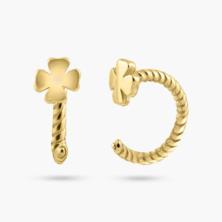 עגילי תלתן זהב 14K מקולקציית ROLL IN הנכנסים בטכניקת סיבוב ללא סוגר. מושלמים לעגיל שני\ שלישי.