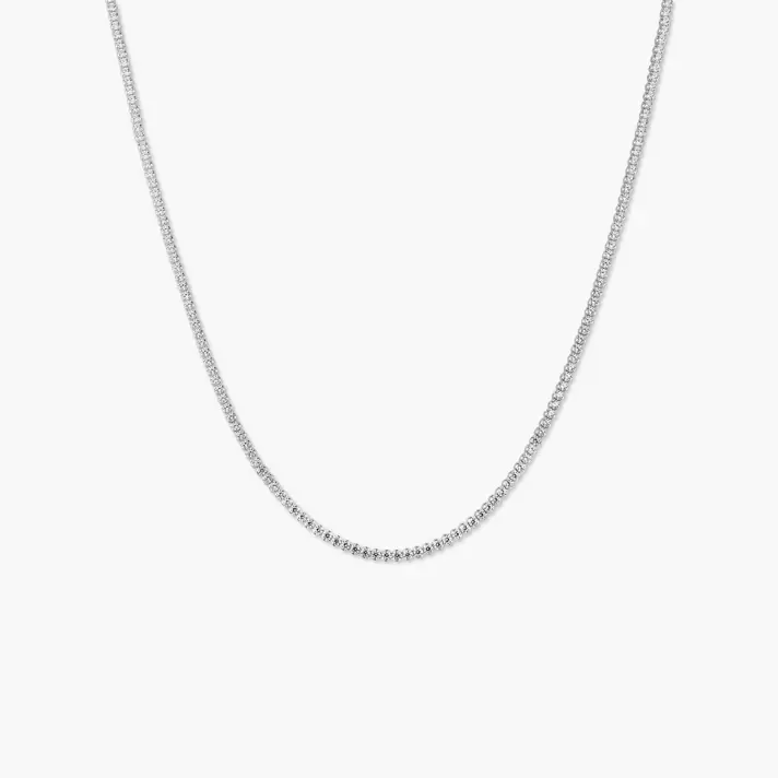שרשרת טניס מזהב 14K בשיבוץ זרקונים נוצצים. אורך השרשרת 43 ס"מ.