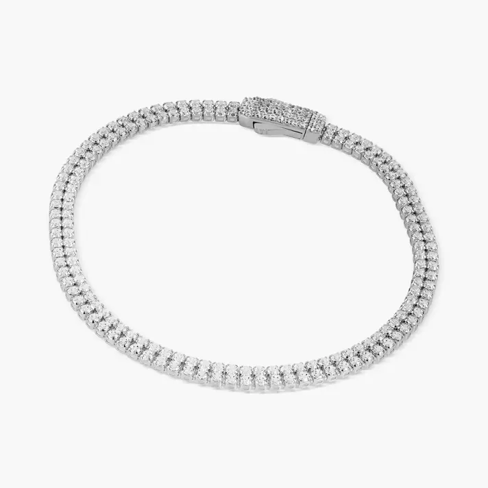 צמיד טניס כפול מזהב 14K בשיבוץ  שתי שורות של זרקונים נוצצים. אורך הצמיד 19 ס"מ.