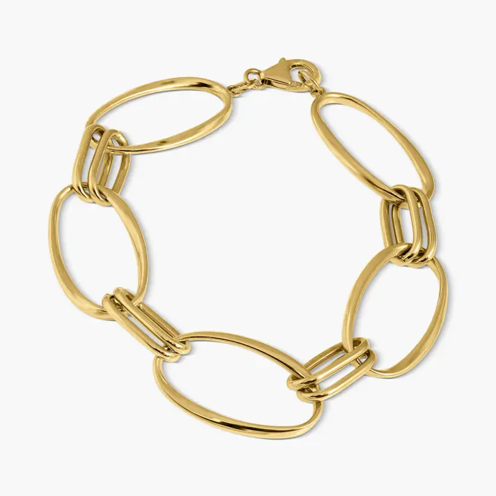 צמיד חוליות מזהב 14K בשני גדלים של חוליות 1.4*2.5 המשתלבות יחד. אורך הצמיד 18 ס"מ.