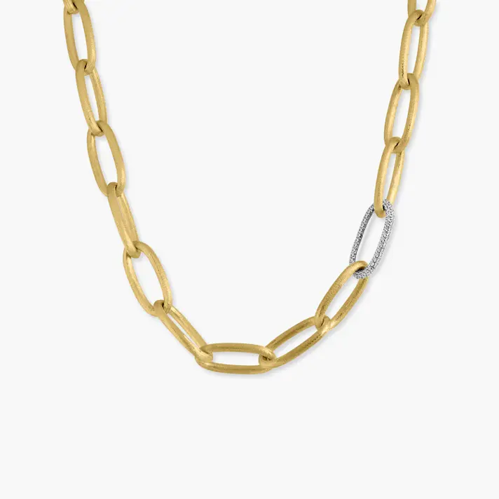 שרשרת חוליות זהב 14K בשילוב חוליה אחת משובצת זרקונים למראה טרנדי, מידות השרשרת 44 ס"מ, מידות החוליות 2*1.2 ס"מ