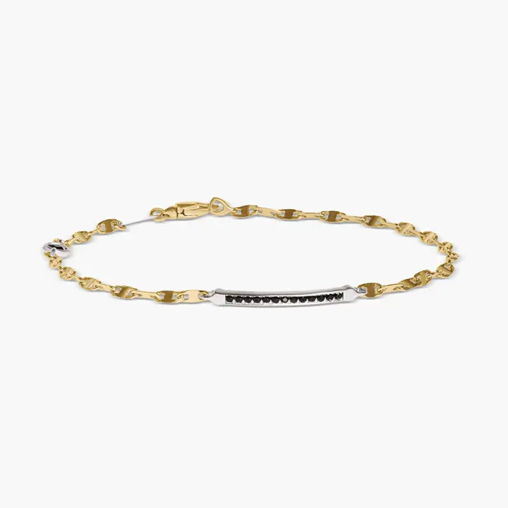 צמיד זהב 14K עם פלטת זהב משובצת זרקונים שחורים