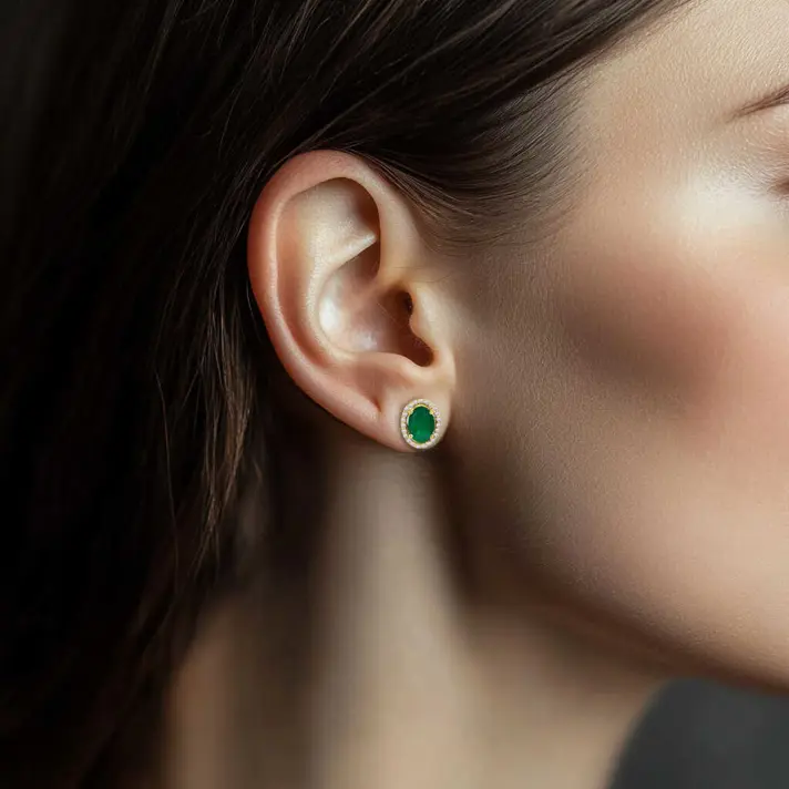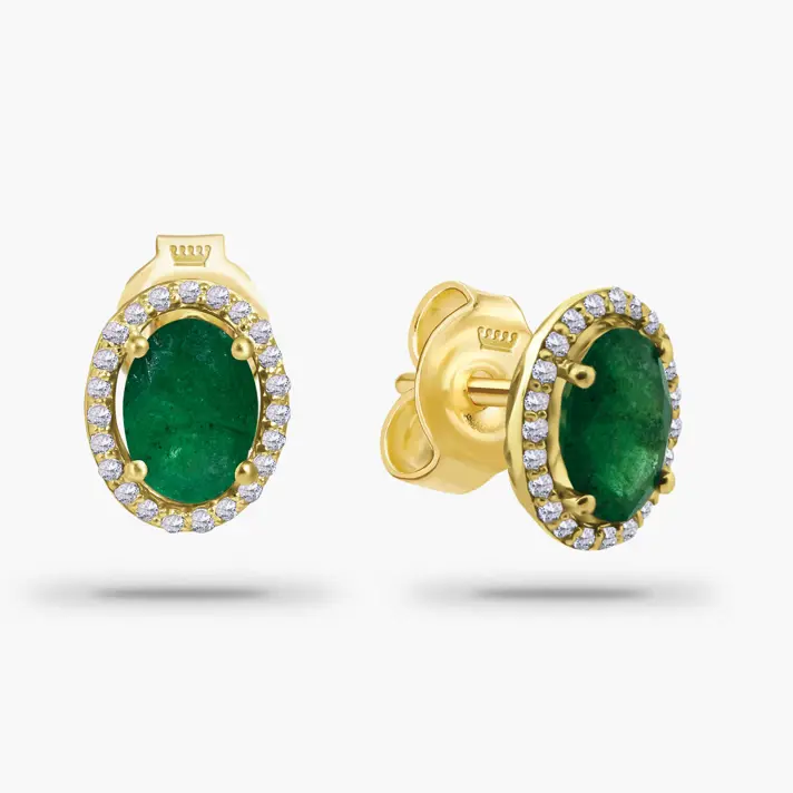 עגילי זהב צמודי אוזן משובצים יהלומים ואמרלד