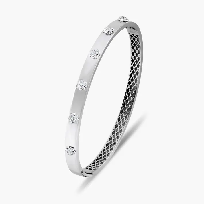 צמיד קשיח משובץ יהלומים בצורת פרחים