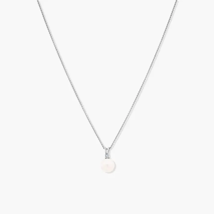 תליון זהב 14K בשיבוץ יהלום טבעי ונוצץ ופנינת מים מתוקים.