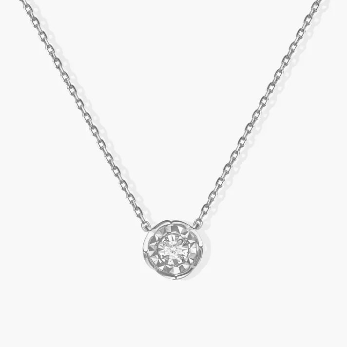 שרשרת זהב 14K משובצת תליון יהלום סוליטר בגימור לייזר לנצנוץ מקסימלי.