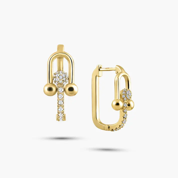 עגילי סהר במראה חוליות טרנדי ובשיבוץ יהלומים