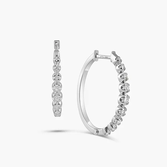 עגילי חישוקים מזהב 14K בשיבוץ יהלומים