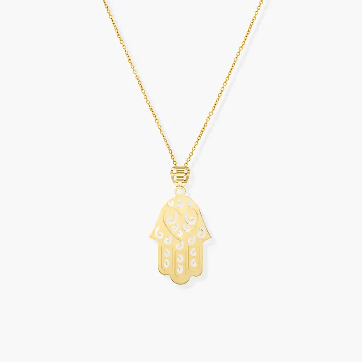 צורת החמסה מסמלת הגנה מפני עין הרע ביהדות ונהגו להעניק כמתנה תליון חמסה כהגנה מפני עין הרע. תליון החמסה עשוי זהב 14K ובחלקו העליון חרוט לב. התליון מעוטר בחריטות שונות. אורך התליון 3 ס"מ כולל לולאה. רוחב התליון 1.6 ס"מ