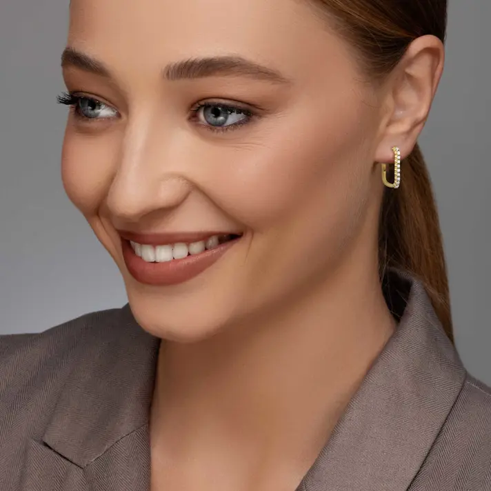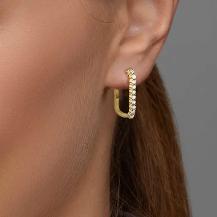 עגילי זהב 14K מלבניים בשיבוץ יהלומים