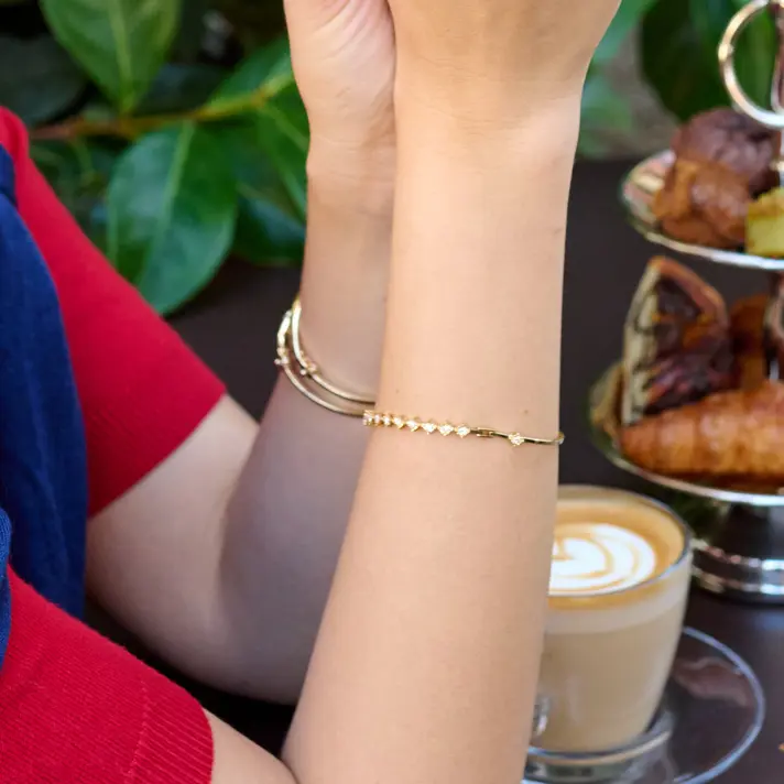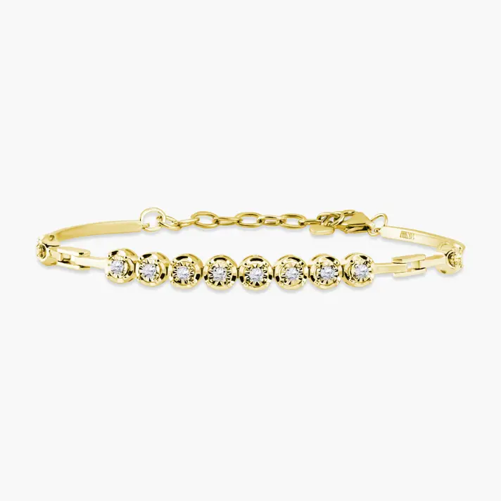 צמיד זהב 14K ארינה ,קשיח עשוי חוליות להתאמה על פרק כף היד, משובץ 13 יהלומים טבעיים ונוצצים. לצמיד סגירת לובסטר נוחה.