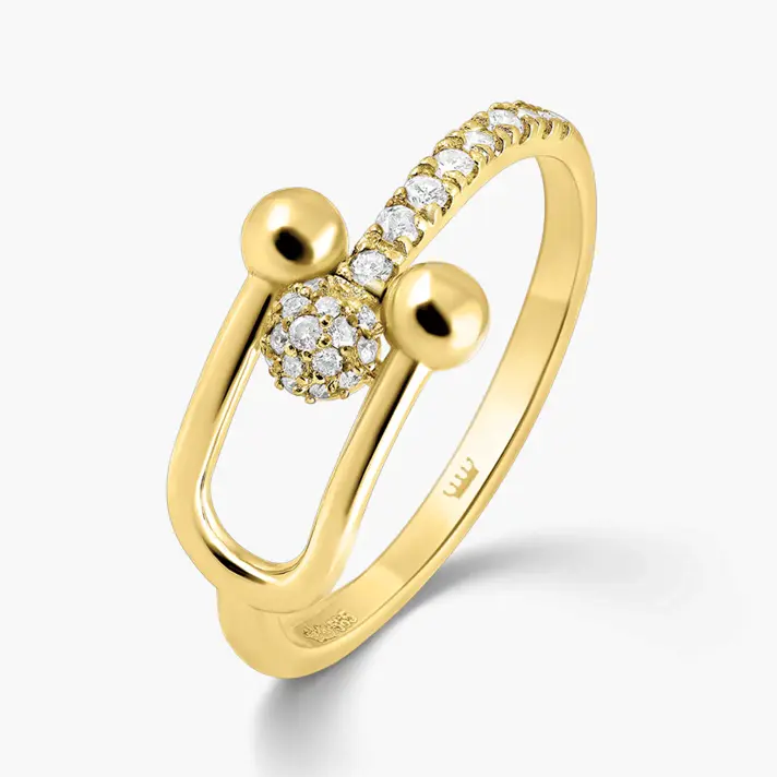 טבעת סהר מזהב 14K במראה חוליות סופר עדכני וטרנדי ובשיבוץ 24 יהלומים טבעיים ונוצצים. רוחב 0.6 ס"מ.