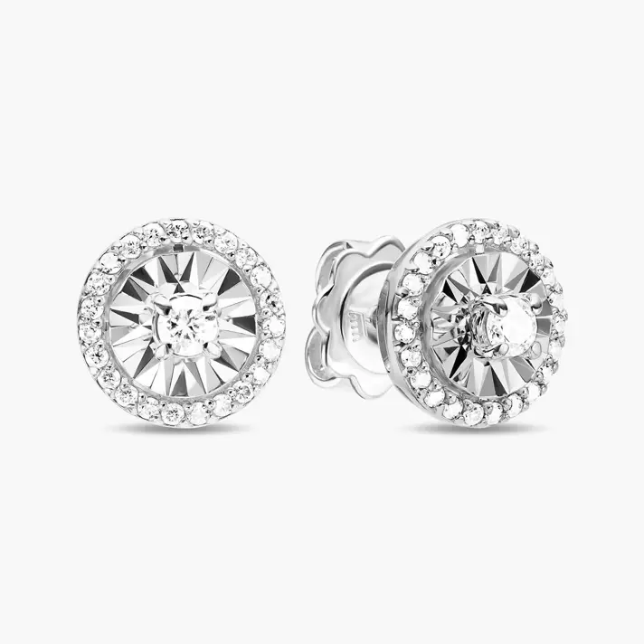 עגילי זהב 14K צמודי אוזן בשיבוץ 54 יהלומים טבעיים ונוצצים.