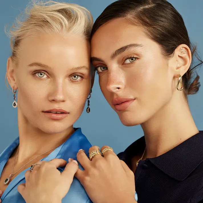 עגיל זהב בשיבוץ טיפות ספירים ויהלומים