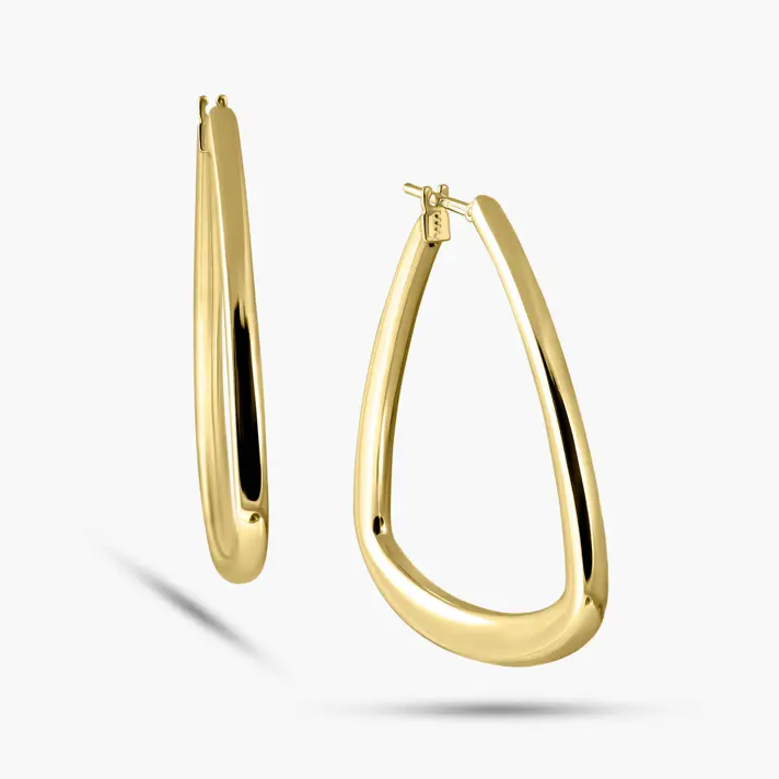 עגילי זהב 14K בולטים בצורת משולש עדכני ומיוחד השומר על קלאסיות. מידות העגילים 4.0*4.0*1.4 ס"מ